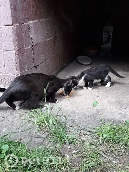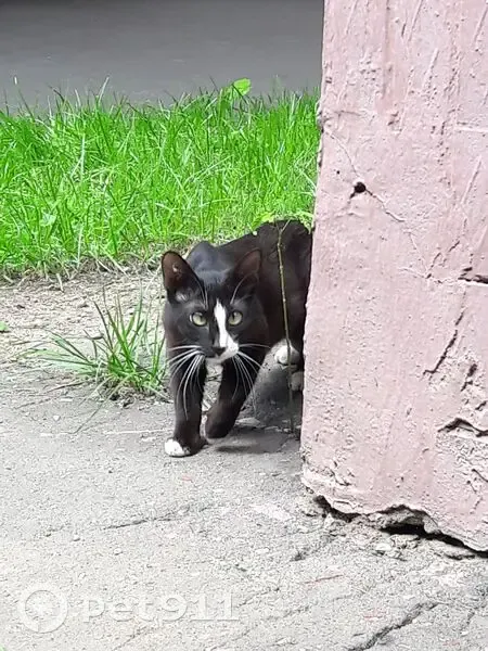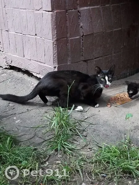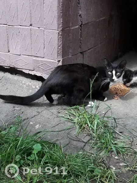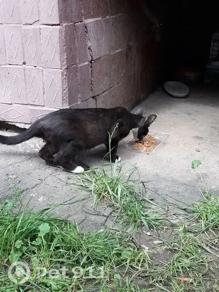 Вытянутая морда. Высокие большие уши. Чёрная с белыми пятнами. Кот или кошка - не знаю. С виду - здорова. Обитает на улице у дома Новопетровская улица, 3, Москва.