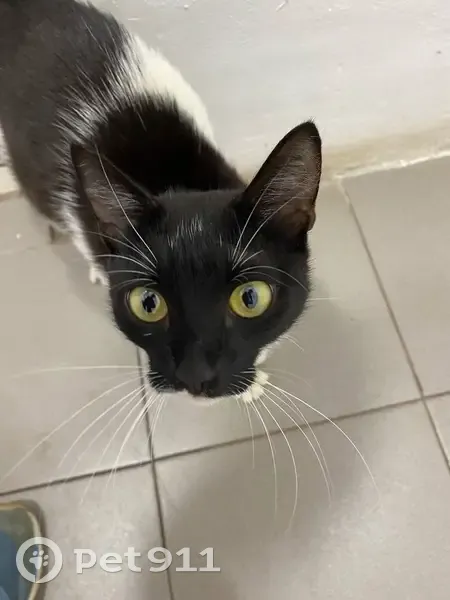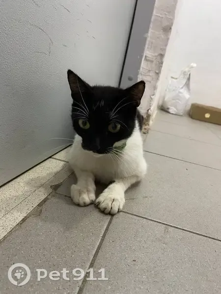 Кошечка с зеленым ошейником, видно, что домашняя, прибилась на трассе у мкада, девочка