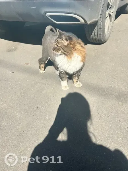 Упитанный , подстриженный кот, видно, что домашний , подходит , гладиться , попыталась взять домой - царапается