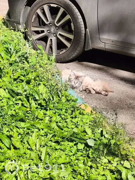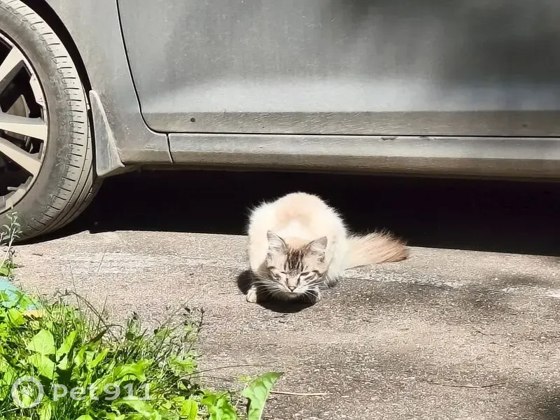 Похожа на Невскую маскарадную (сибирскую), правый глаз прищурен, не особо пушистая - может, еще подросток. Не убегает, но прячется, если подходить ближе.