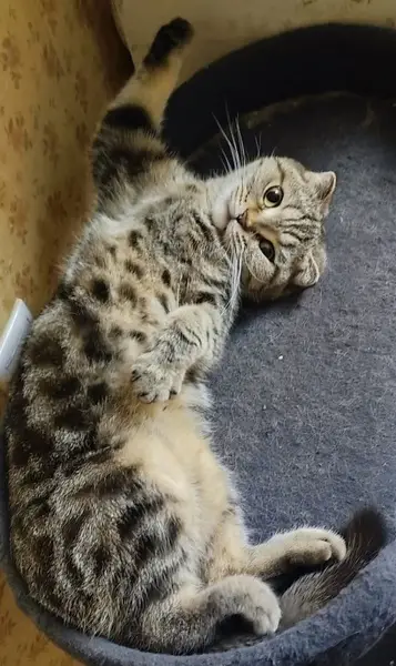 Примерно в середине мая,в месте кормления появилась кошечка с поврежденной лапкой.Окрас мраморный, миниатюрная девочка, очень ласковая и контактная. Хвост закручивается в спираль. Ищем старых или новых хозяев.