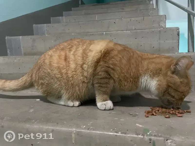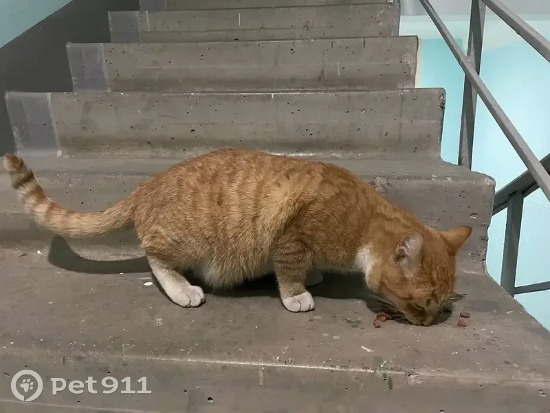 Рыжий кот. Не стерилизован. На вид около года. Довольно пухлый, пушистый, видно что домашний, очень сильно плачет в подъезде, ласковый обтирается об ноги, хочет залезть на руки и зайти в квартиру. Вышел с чердака