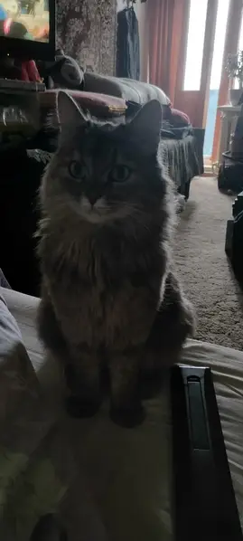 Кошечка серая очень пушистая, чистенькая, с белым кулончиком, поймать не смогла, но покажу, куда забежала. Скорее отзовитесь.