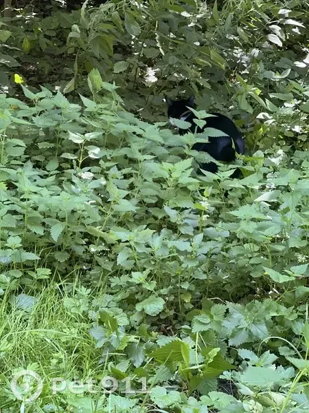 Мы ее видели ( на точке, указанной на одном из фото), в руки не далась, была в ошейнике и в шлейке, и мяукала под елкой, потом убежала. Черная, есть фото