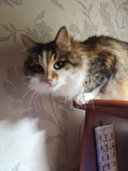 Пушистая, кошка ручная, к лотку приучена, нашлась на улице во дворе дома сидела два дня, на ней был синий ошейник с отражающей полосой.