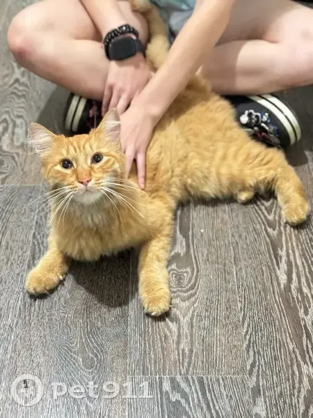 1 сентября 2025 г примерно в 23:30 заметили и поймали кота . Окрас рыжий . Кот крупный , кастрированный . Возраст молоденький 1г+ .Вес 4,7 ( очень худой) . По повадкам ласковый , очень контактный , любопытный . Знает лоток на 5+. Нейтрален к собаке . Хочет ладить с нашими котами . Агрессии нет. Разыскиваем только хозяев . Главное фото и второе сделано спустя 2 месяца ! После того как мы нашли кота . Следующие 7 фото сделаны в день ,когда мы нашли кота .Хозяин, найдись!