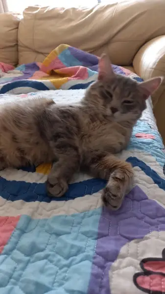 Кошечка без ошейника, молодая, примерно 8-9 месяцев, недавно стерилизованна (на пузике свежие швы - меньше месяца назад) Была найдена у дома: Тайнинская 7, не отходила от этого дома и жильцы наблюдали ее у дома несколько дней подряд. Жильцы этого дома писали в общий чат дома в поисках хозяина, но без ответа. Кошечка явно домашняя, забрала на передержку. Хорошо знает что такое лоток, очень ласковая.