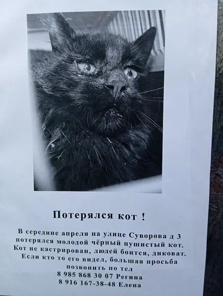Кот мейн-кун или смесь, чёрный на ушах маленькие кисточки, появился недавно, сам подходит мяукает, просит погладить и хочет зайти в подъезд. Явно домашний, но объявлений не видела.