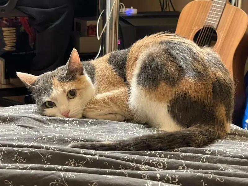 Вислоухая, трехцветка. Взрослая. Предположительно, кошка
