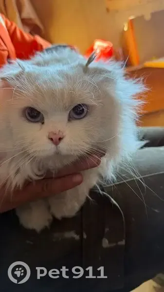 Белая кошка породистая. Найдена в районе ТЦ бухта. Метро физтех. Кошка или кот напуган, ничего не кушает, не пьет. Домашний скорей всего. Отдадим только хозяину с подтверждением что это его питомец (фотографии и тп)