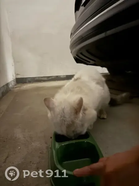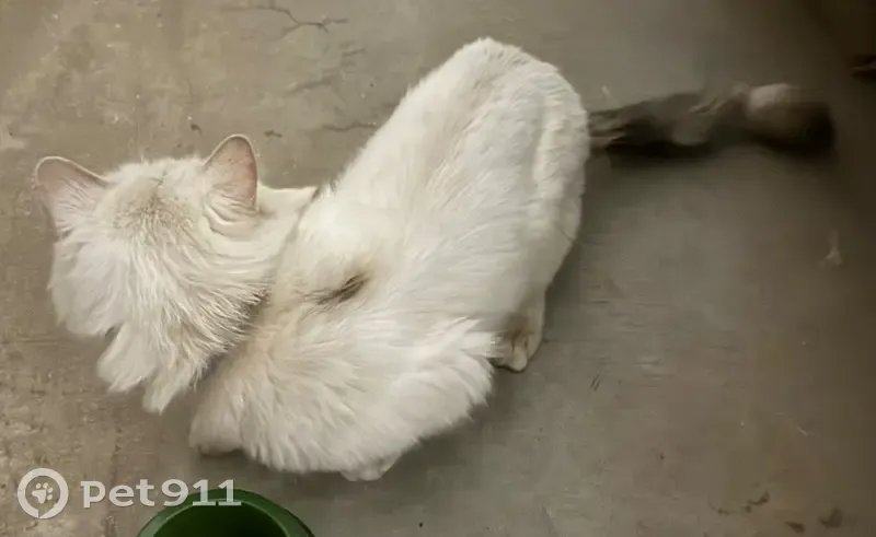 Найден кот Белый с серым хвостом В ошейнике