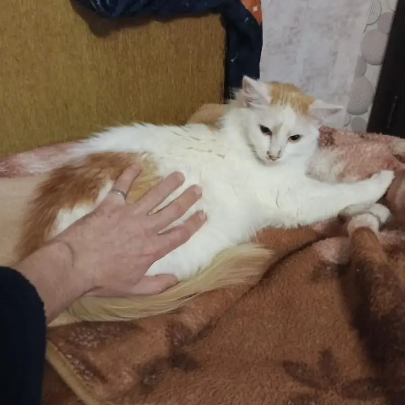 Найдена на улице трехцветная кошка экзот, курносая, пятнистая на белом. Очень доверчивая, ласковая. Хозяин, найдись!