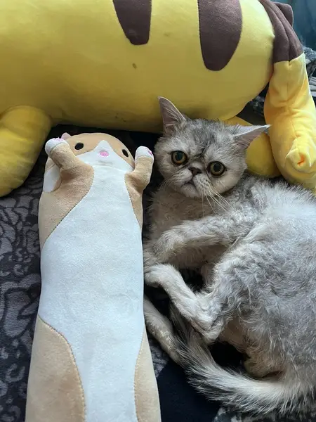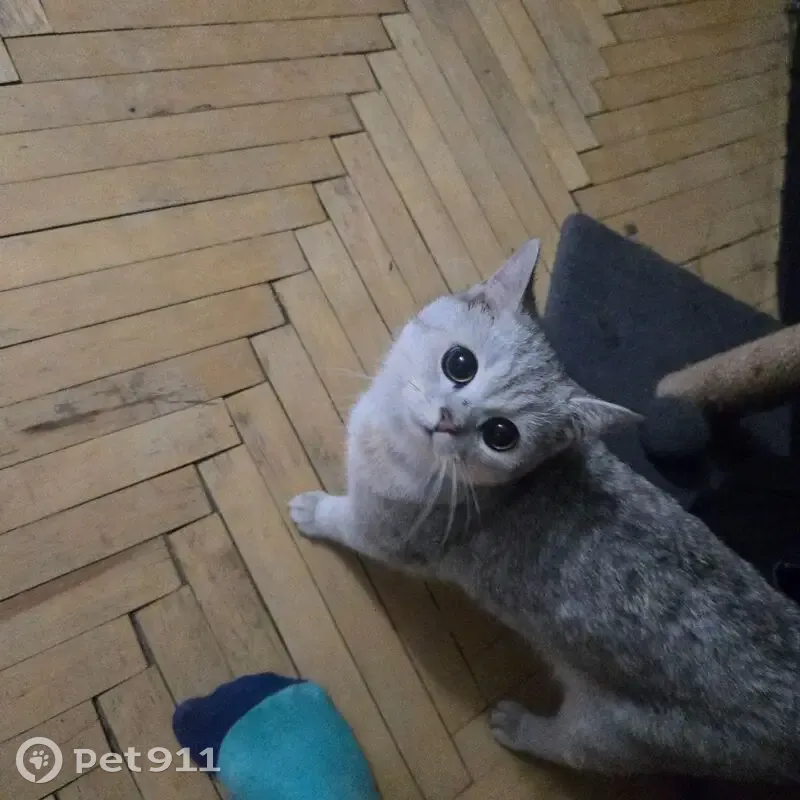 Желтый ошейник, серый котик, мальчик, с чёрными полосками на хвосте. Очень ручной. На улице испуганный был