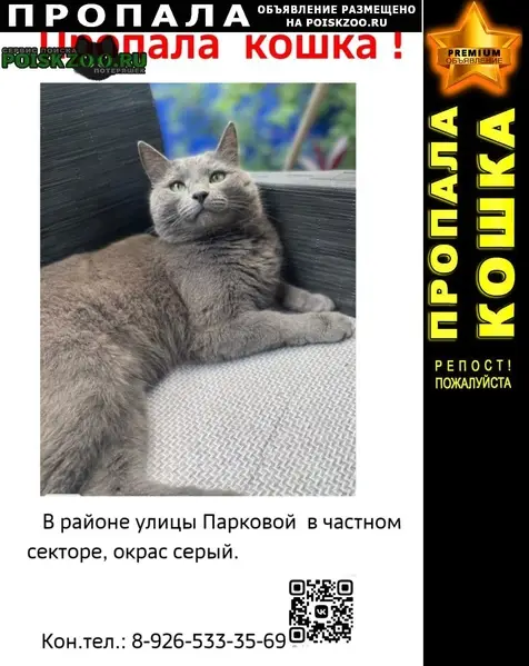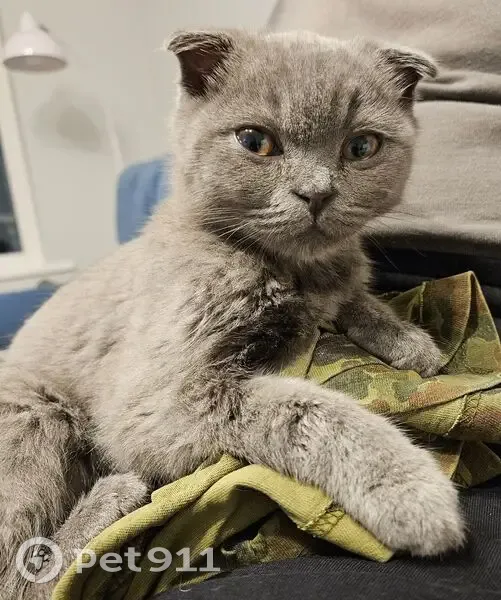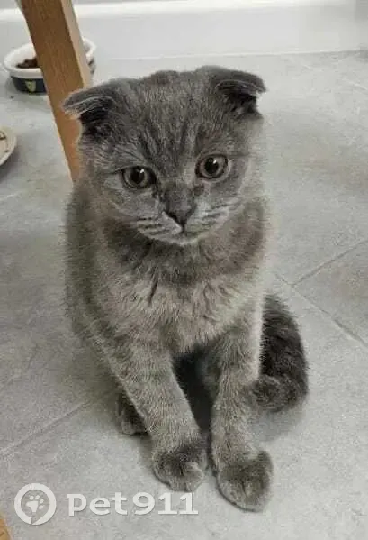 Котёнок, породистый, серый окрас, шотландский вислоухий, найден у 1 подъезда д. 4 к.1 Соловьиного проезда в субботу 19.10.2025 в 17.45-18.00. Малыш ищет и ждёт своего хозяина!