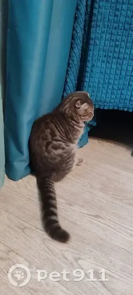 Дымчатый с мраморными полосками, вислоухий, очень добрый, ласкучий, молодой кот(вероятно ещё котенок) Был чистый, испуганный, дрожал, скорее всего замёрз. Нас к себе подпустил и сразу начал тереться о ноги.