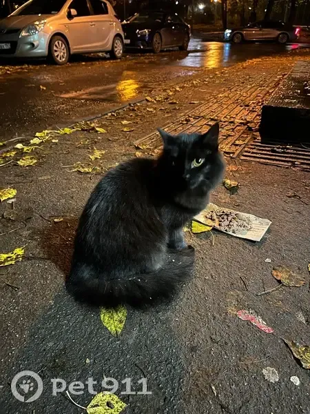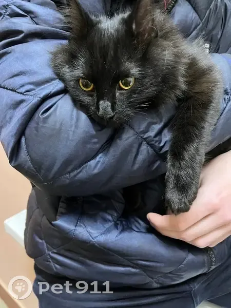 Найдена кошечка. Окрас весь черный. Пушистая, чистая, ласковая, ручная. Глаза оранжевые, возраст примерно около двух лет. Обнаружена в 23:30 возле магазин Пятерочка. По внешнему виду только в этот день убежала. Вся чистая. Пока держим в подъезде. Очень ждём её хозяев. Телефон 89151815701 Татьяна