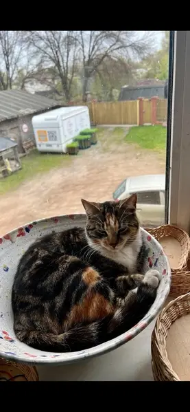 Молодая кошечка, очень ласковая. Не боится людей и даже собак. Окрас коричнево рыжий. Похожа на рисунок бенгальской породы