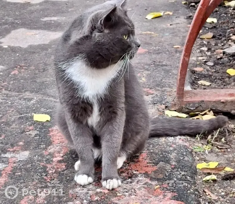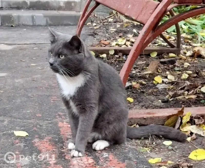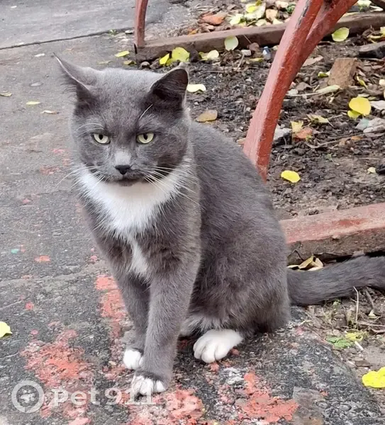 Найден кот, окрас дымчатый (серый), белая грудка и белые носочки на лапках, нос черный, глаза зеленые. Появился примерно в августе. Очень ласковый, тянется к человеку. Хозяин, найдись! Скоро холода, котик сидит около подъезда.