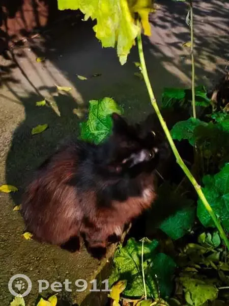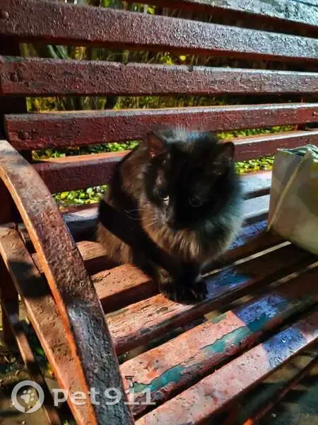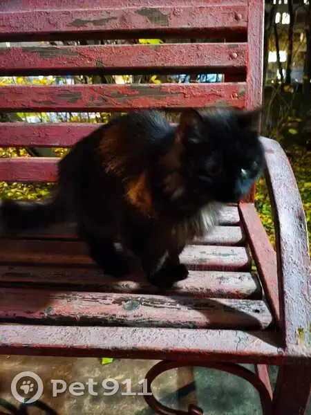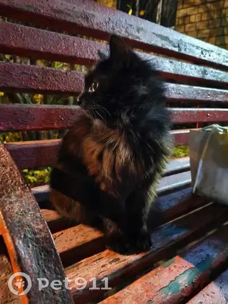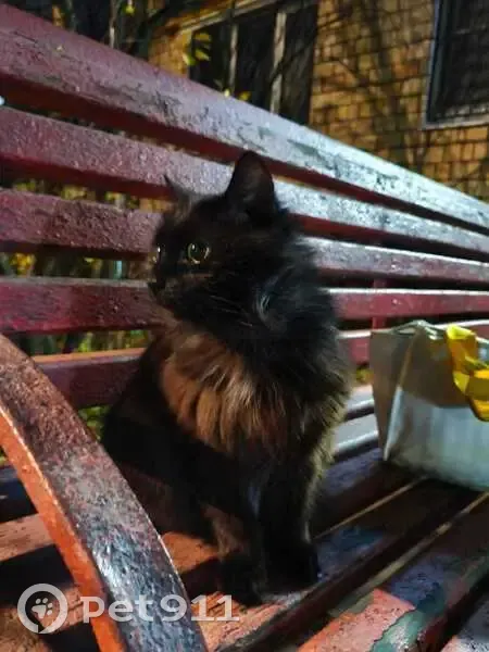 Черная маленькая кошка (скорее всего девочка) шерсть длинная подшерсток отливает коричневым, тощенькая. Ходила вокруг дома, сразу подошла на кс-кс, дала почесать себя, далась на руки и не убегала, не стала есть отварной фарш и потом ушла по отмостке дома. Людей рядом не было и к подъезду она не пошла, с уличными кошками не общалась. Замечена в 19.15 у дороги рядом с 9-ым домом на Фортунатовской улице.