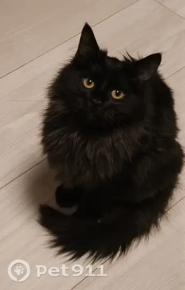 Найден черный пушистый котик. Весь вечер плакал возле нашего окна на дереве. На ручки пошёл сразу. На вид 4 мес. Очень ласковый, видно что был домашний. Хозяева не нашлись.