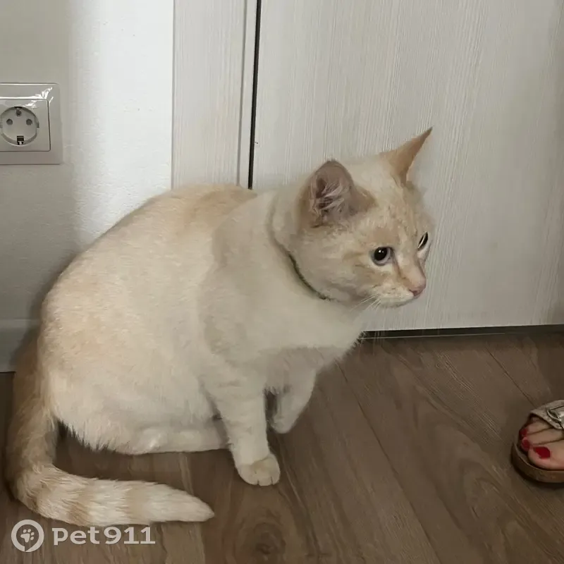 Нашла кота во дворе дома, на шее зелёный ошейник от блох и клещей, по виду на улице не 1 день, окрас белый с рыжими полосками, ласковая и игривая. Если знаете хозяев напиши в телеграм @shysh