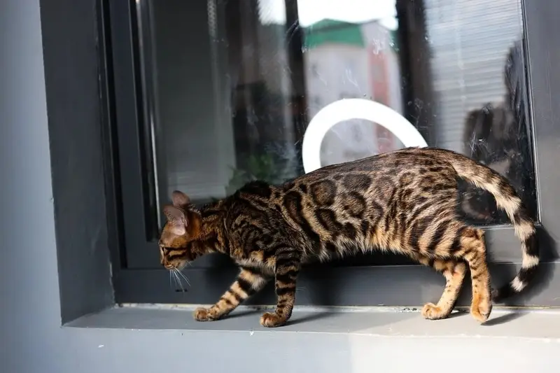 Обычная кошка, полосатая таби, плачет и сидит на месте, достаточно дружелюбная, но боязливая, бегает, смотрит и подходит к людям, но не убегает далеко от района, у местных узнали, что уже неделю ходит под окнами. Если кто-то сможет взять себе на передержку будет здорово, домашние котики не выживают в условиях улицы.