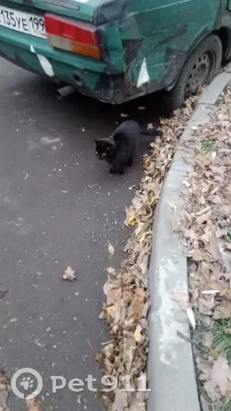 Три недели назад на нашей улице появилась черная кошка. Людей не боится. Очень храбрая маленькая пантерка. Когда кормишь ласкается об руку. "Делает дела" в ямку и закапывает за собой. Ищу хозяина или пристроить в добрые руки. Скоро холода.