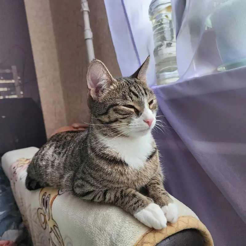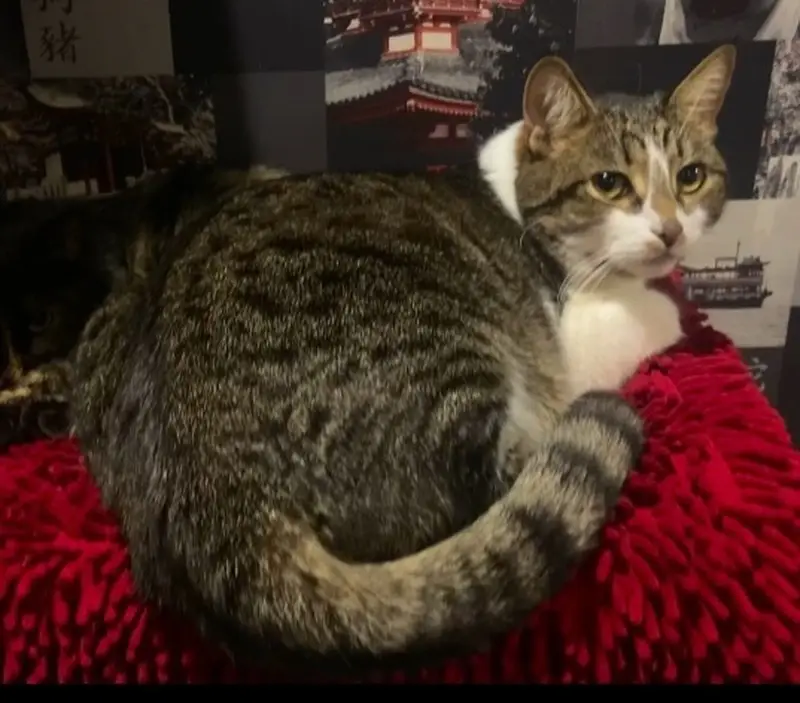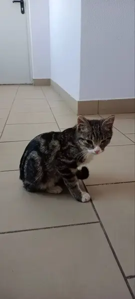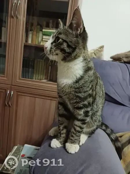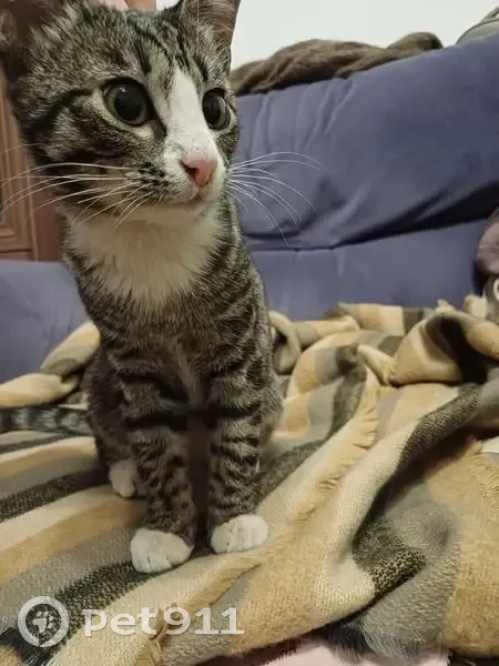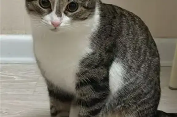 Серый окрас. Домашний, нашли вместе с ошейником. Но нет телефона.