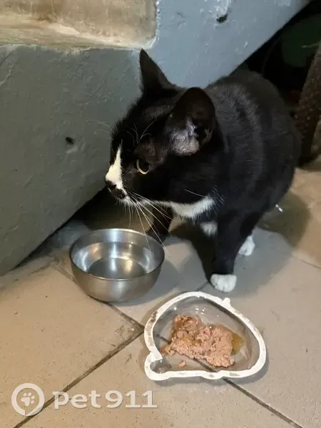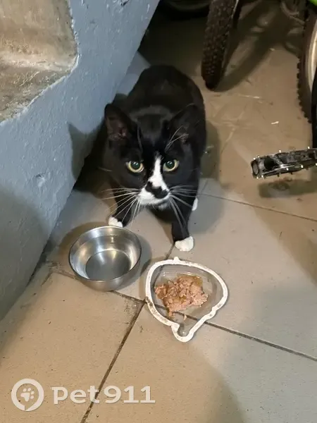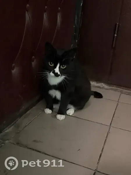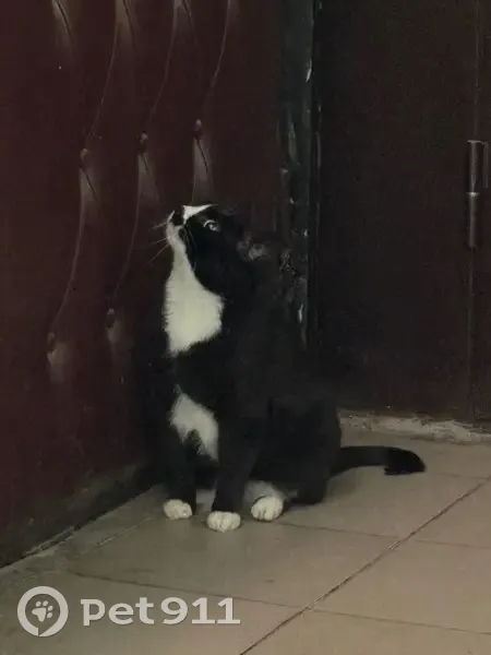 Черный, с белыми носочками на передних и задних лапах, а так же белая грудь и животик. Скорее всего кот кастрированный, ласковый. Сидит под лестницей, путевой проезд 26А, подъезд 3. Проситься в дверь на пером этаже. Может в добрые руки кто возьмет очень жаль его