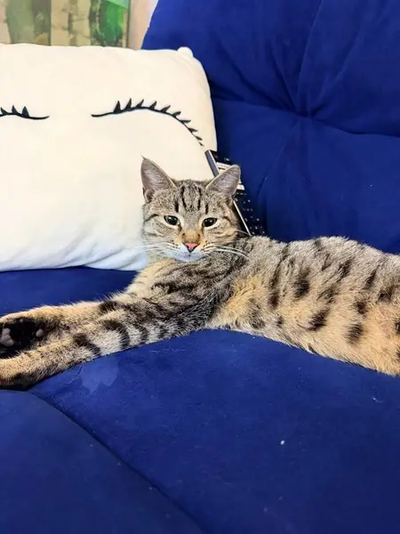 Найден котик полосатый, шпротной окраски, носик розовый, подушечки на лапках черного цвета. Маленькие черные кисточки на ушках. Точно не могу сказать, но вроде не кастрирован. Ошейника или других отличительных признаков не имеет.