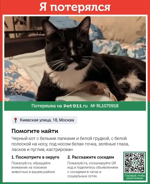 Каждый час поисковый робот Pet911 на основе искусственного интеллекта сканирует и распознаёт тысячи фото со всех тематических сайтов и социальных сетей для того, чтобы найти питомцев, похожих на вашего.