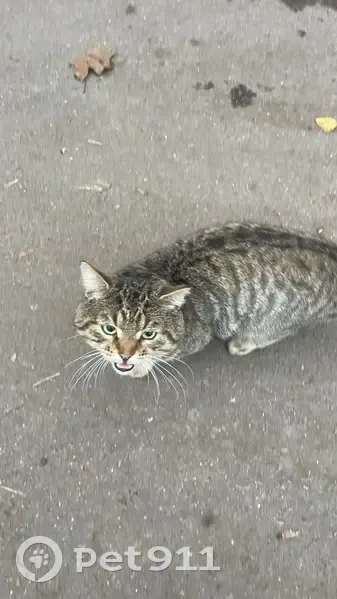 Кот,некастрированный ,уже 5 месяцев приходит к нашему дому,всегда его кормим,очень добрый и контактный,но немного пугливый,видно,что старенький.Может,кто-то потерял,он крупный,зеленые глаза