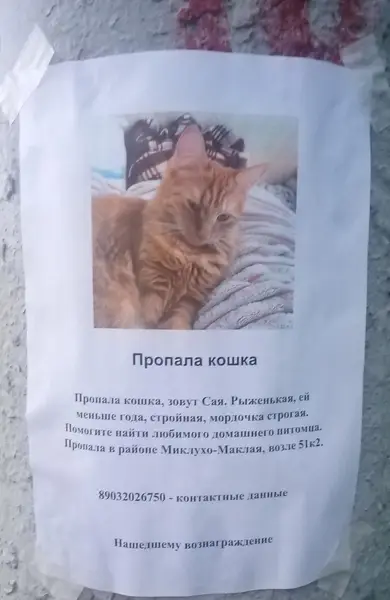 Рыжей породы. Неизвестного пола, на вид молодой. Был замечен возле дома 3/5 на Даниловском переулке. Может и местный, может и потеряшка. Без ошейника. Подходить боится. Так как ищем своего РЫЖЕГО, обратили внимание на него. Перебегал дорогу, пришлось срочно искать место куда запарковаться и проверять наш или нет. Есть небольшое видео. При запросе отправлю.