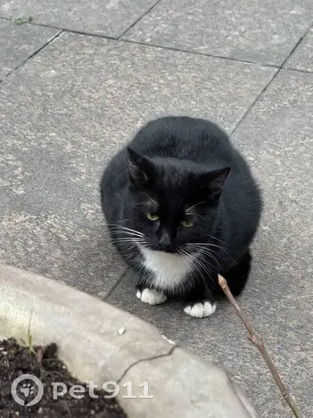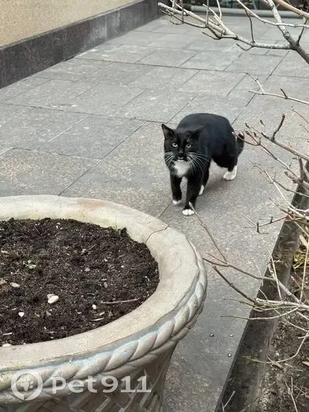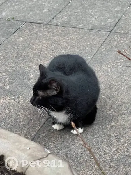 Подбежал, ластится и громко мяучет. Даже пузо подставил, но вроде никуда не ведёт. Выглядит домашним, шерсть чистая и блестит.