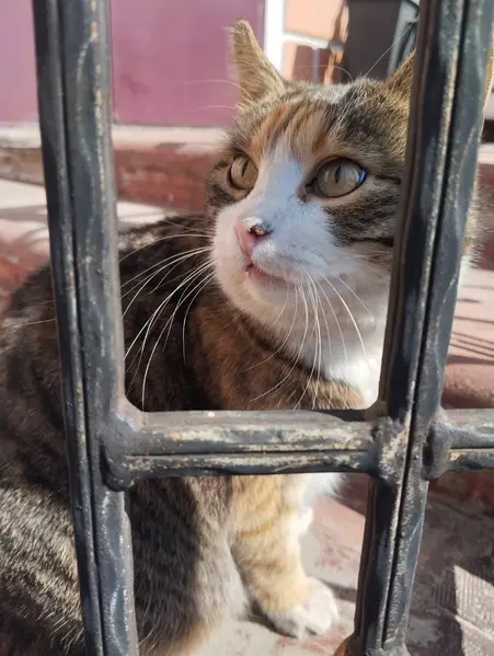 Напротив трактира прячется под машинами Кошка мяучет,подходит к людям,видно домашняя