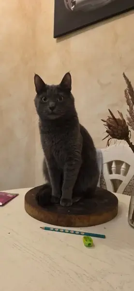 Котик ухоженный, видно что был домашним. Общительный, мяукает при виде человека. Думаю относится к породе Русская голубая