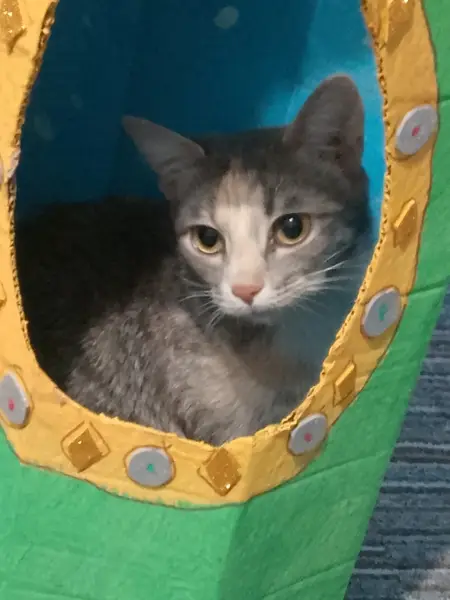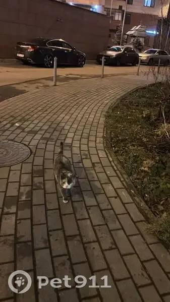 Кошечка. Постоянно мяукает, подходит к людям. Покормила её. Взять домой не могу, у родственников аллергия. На уличную не похожа. Связь со мной - тг @aleksilmaranta