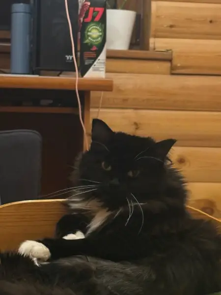 Похоже, мальчик. Явно домашний. Даёт себя гладить. Черный, с белыми лапками и грудкой. Кот крупный. Найден по адресу Ленинский проспект 139.