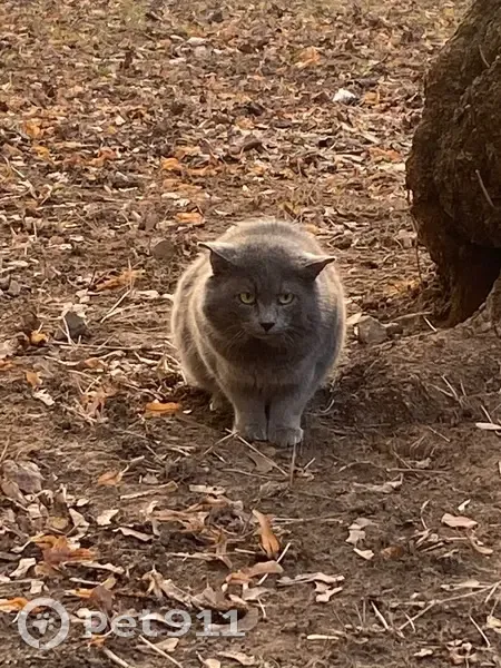 Серый пушистый дымчатый кот , карие большие глаза. Не кастрирован!!! Вполне упитан , видно , что домашний , пуглив и сень боится людей . Прячется в подвале на Большой Серпуховской улице 64
