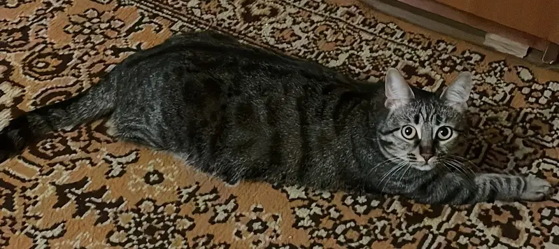 Серый полосатый домашний умирает на улице. Телефон на 2 скрине