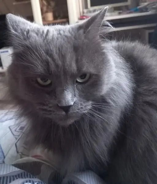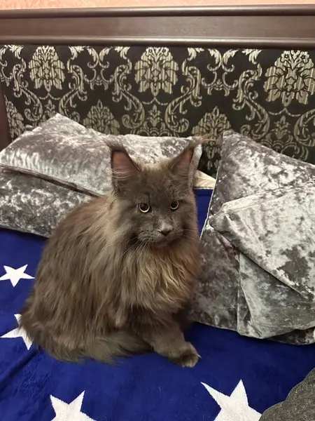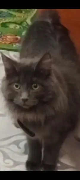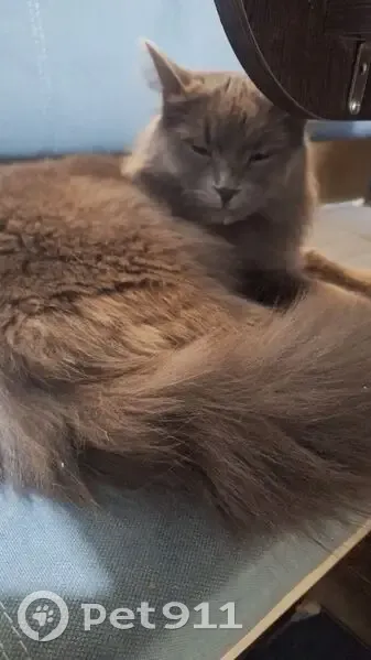 Дымчатая, очень ласковая. Кошка домашняя,пометили ветклинику, оказался молодой кот, вес 4,800. Очень спокойный!