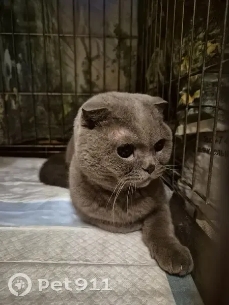 К кошачьему домику прибилась Шотландская вислоухая кошка серая с крупными карими глазами.Либо в возрасте,либо в не очень хорошем состоянии,задние лапки похожи немного на артритные (слегка расставлены в стороны). Явно бывшедомашняя.
