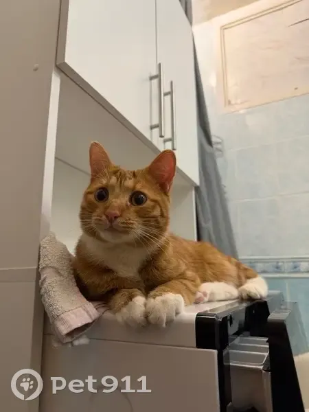 Рыжий, некастрированный, домашний кот, без признаков болезни, очень чистенький, мяукает не громко, ласковый и игривый, год-полтора по возрасту.