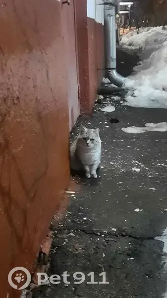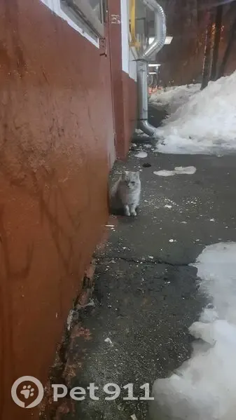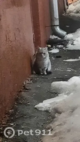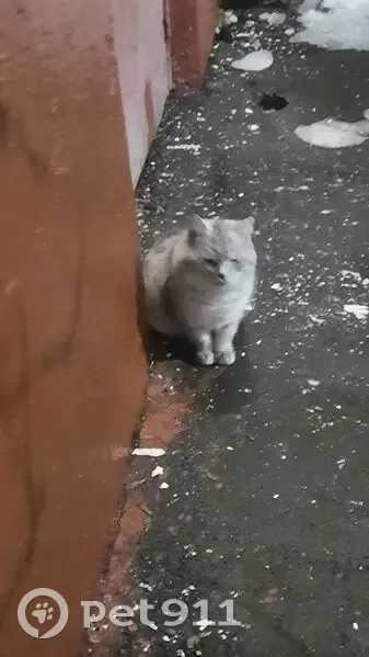Кот (кошка) домашняя, британская или шотландская, появилась во дворе ещё до начала морозов, её (его) кормит женщина из первого подъезда и к ней он идёт на руки, даёт гладить. Окрас светло-серый дымчатый, короткие лапы, плюшевая. Местные подвальные кошки его не принимают, сидит около 1го подъезда.