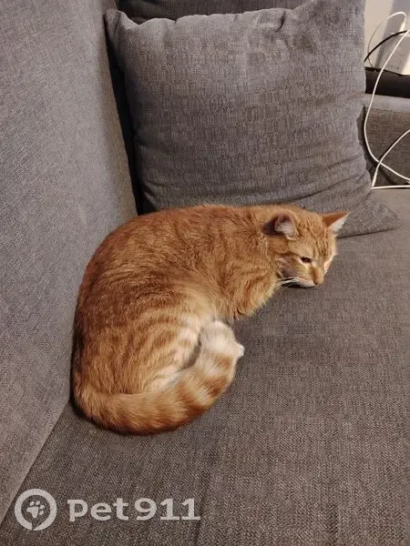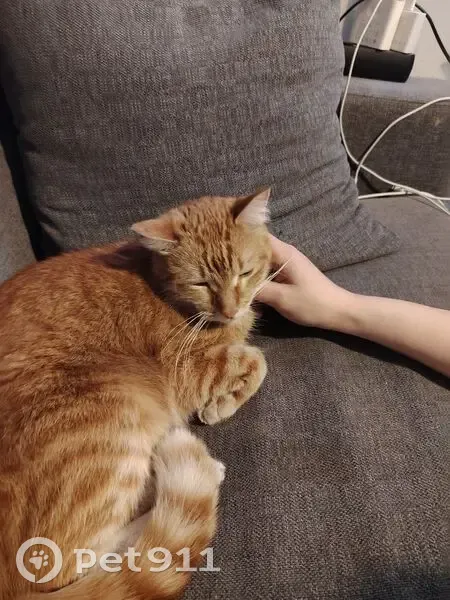 Рыжая кошечка, с белым пятном на груди. Очень общительная, не боится людей, сидела и ждала у подъезда