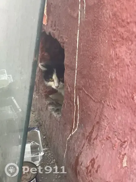 Замечена чёрно- белая кошка/кот. Прячется в подвале, но выходит в отверстие покушать и в целом посмотреть. Черно-белый, но грязный. У домочадцев аллергия, поэтому себе взять не могу, но помогу с поимкой и дальнейшим уходом.