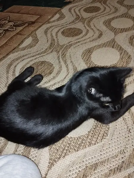 Кошка домашняя, чистая, ласковая, на шее красный ремешок. Появилась у нас в подъезде 18 октября.