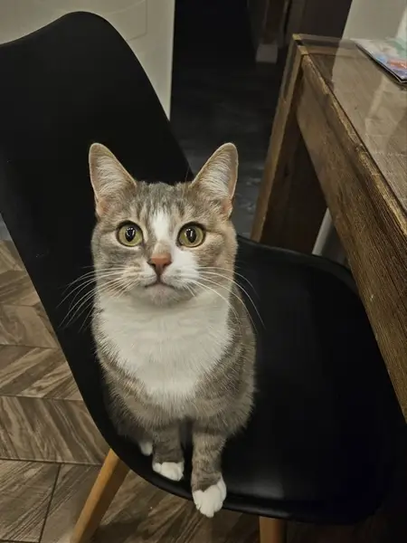 Девочка явно домашняя не грязная, нашлась около подъезда Новопесчаная 9, пряталась под машиной и в кусте, но вышла на кскскс и проследовала за мной в подъезд после приглашения. Очень спокойно идёт на руки и прямо так бы донёс до ветеринарки, но решил позаимствовать переноску у своего кота. Ветеринар из Вет-Дух проверил и сказал, что ей примерно 4 года, стерилизована. Но с моим котом первый вечер тяжело. Он очень хочет с ней пообщаться, но пока нужна изоляция и карантин. Хозяин найдись