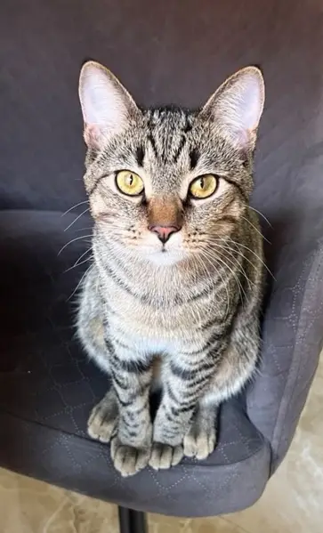 Кот 3-4 года, кастрирован, ухожен, пахнул свежестью, чистый (видмо недавно мыли). Крупный, упитанный, вес примерно 3-4 кг. В ошейнике красном от клещей/блох. Супер спокойный, ходит в лоток, хорошо кушает, сразу дался в руки. Видели на стоянке часов в 7 вечера у Бульвар Веласкеса 2, прошмыгнул под машины. Вышли с собакой в 11 вечера, видим — сидит на том же месте. Забрали себе, ищем хозяев.