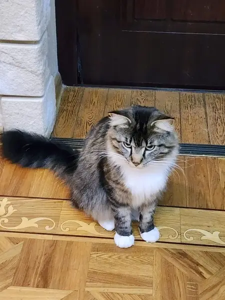Метис с сибирской,девочка,примерно 10 мес.,серо белый окрас,как-то попала еа козырек соседнего балкона 16-го этажа.С большим трудом удалось её переманить на наш козырёк, и подсставив таз с едой,спровоцировать,чтобы она в него прыгнула .Была обезвожена и истощена.Сейчас ототкармливаю и снимаю стресс.Сдали анализы в .вет.клинике.Немного понижен гемоглобин.Ждём ответ на вирусн.заболевания.Кошка явно домашняя- знает лоток,не боится людей.Наверное,досталось от уличных котов- поцарапаны ушки и боится моих домашних кошек.У меня две кошки уже есть,поэтому не хотим ещё одну.Пока восстанавливаю её.Отдлам только надёжным людям.Были расклеяны объявления с фото по району,на доме- хозяин не отзывается.Надо пристроить в новые добрые ручки.